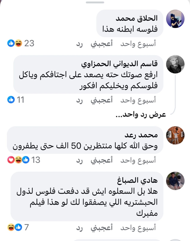 وانضم "الحلاق محمد" إلى سلسلة الانتقادات بمقولته اللاذعة "هذا الفلوس كلها ببطنه"، في إشارة إلى تضخم حجمه نتيجة شبهات الفساد المالي.