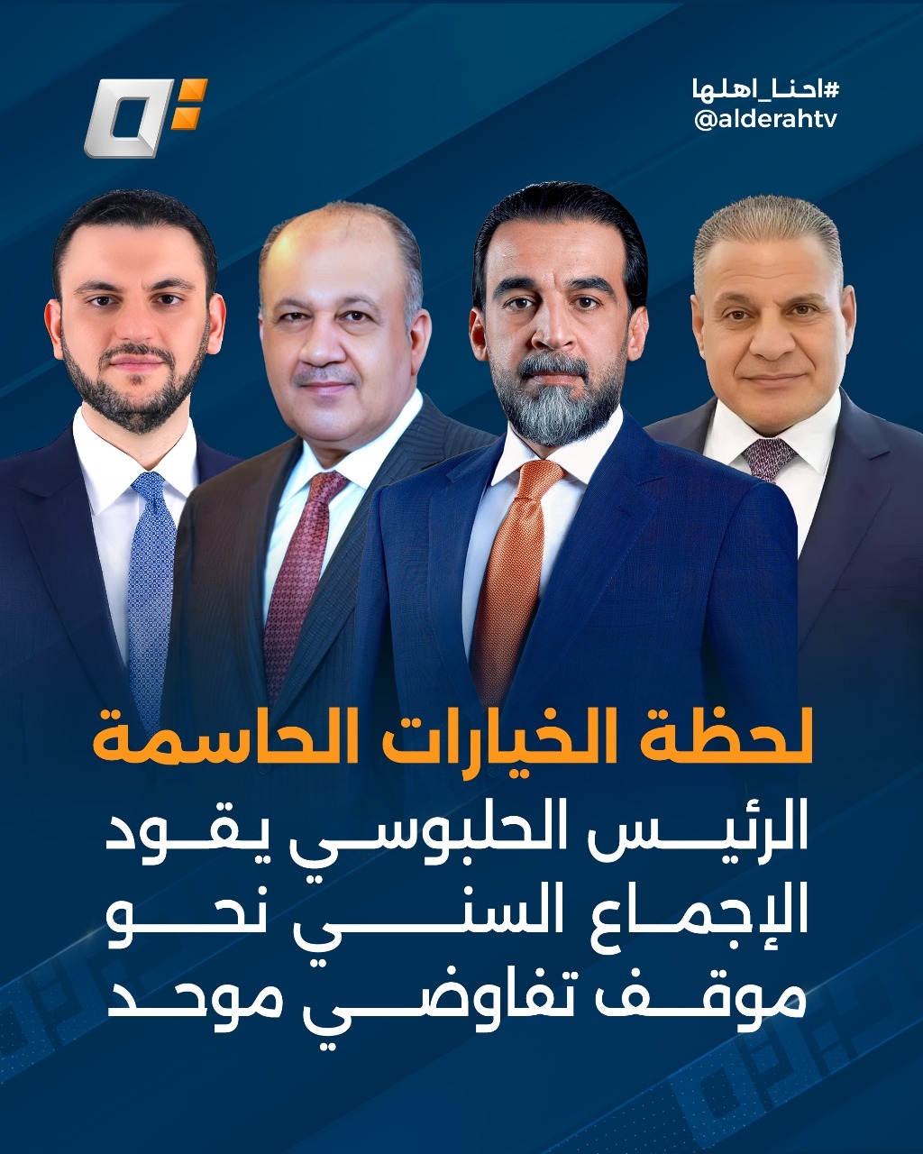 وفي الجانب السني، يقود الرئيس محمد الحلبوسي وحزب تقدم تحركاً سياسياً واسعاً لتوحيد الموقف التفاوضي داخل المكون، باعتباره صاحب الكتلة السنية الأكبر بعد فوزه بـ35 مقعداً في الانتخابات الأخيرة.