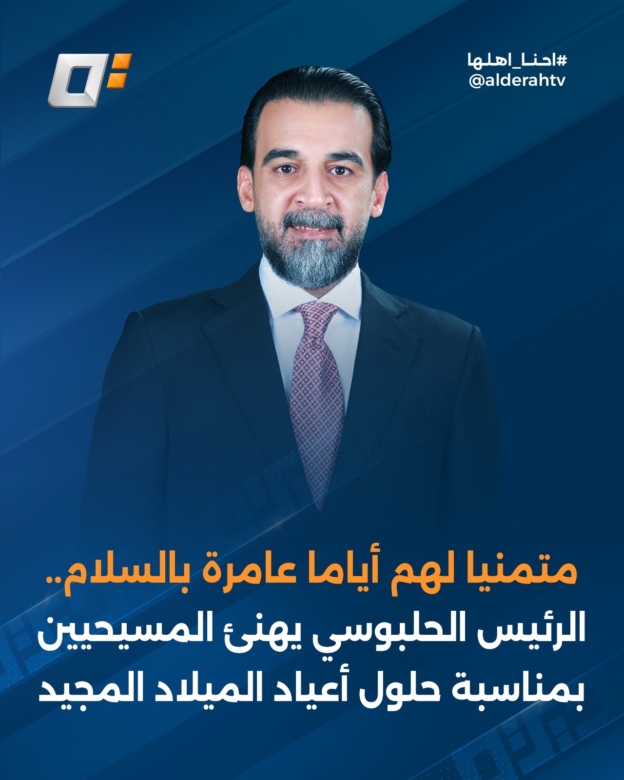 وقال الرئيس الحلبوسي في تدوينة نشرها على موقع “إكس" وتلقتها "الديرة": "بحلول العام الميلادي الجديد، نتقدم بوافر التهاني وأطيب الأمنيات لشعبنا العراقي العزيز".