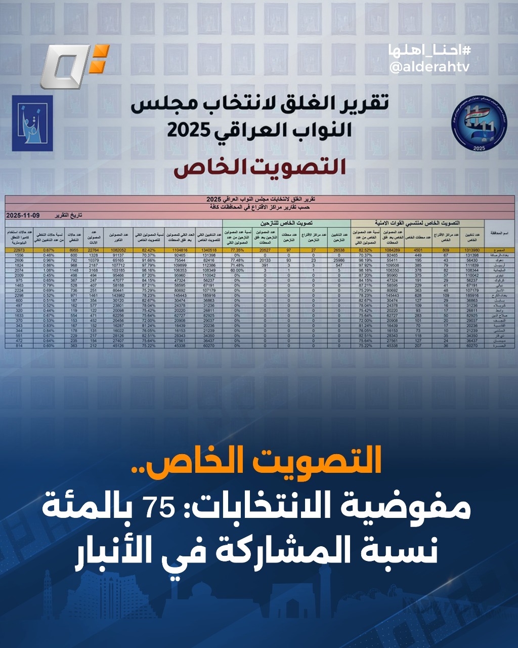 التصويت الخاص.. مفوضية الانتخابات: 75 بالمئة نسبة المشاركة في الأنبار