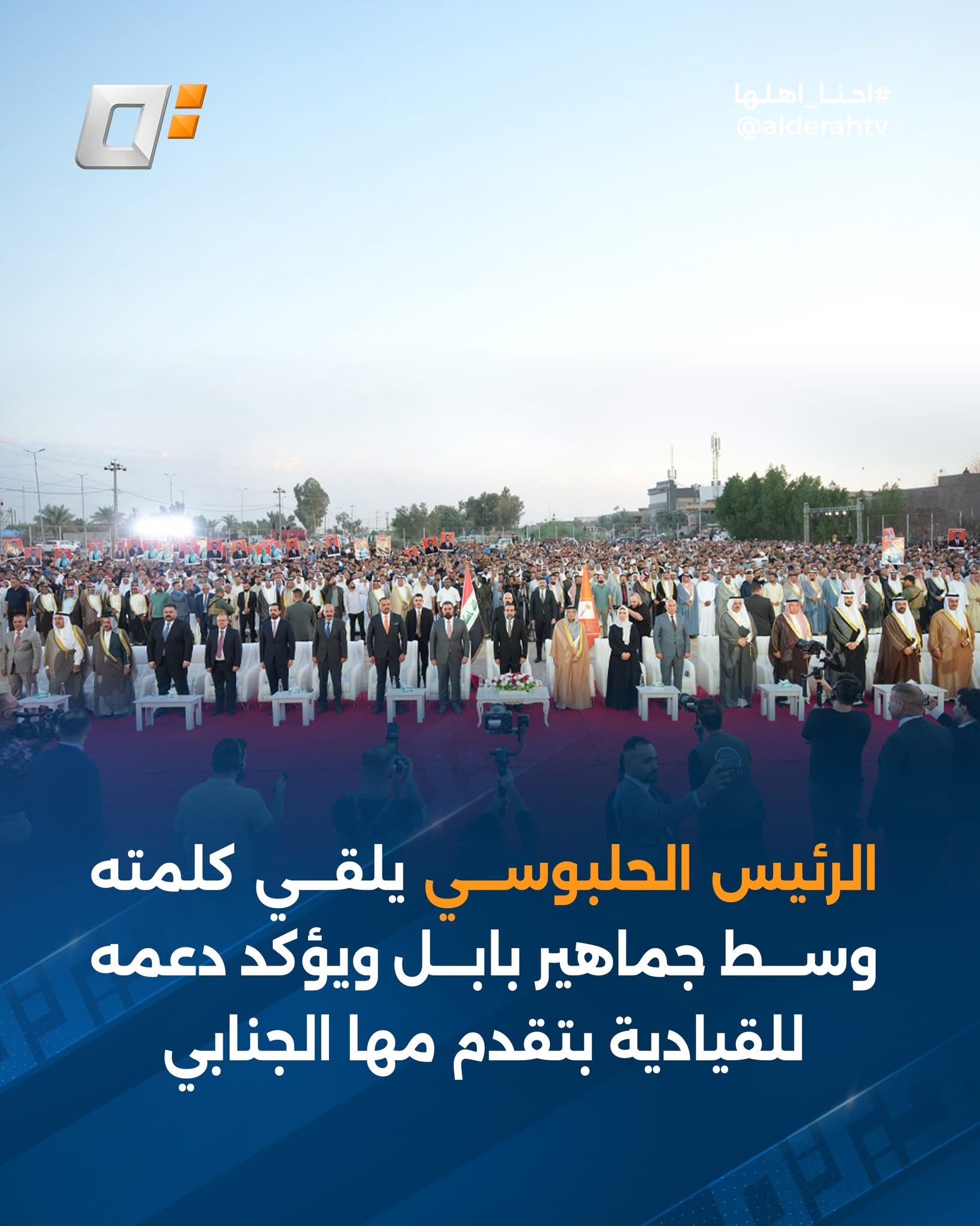 الرئيس الحلبوسي يلقي كلمته وسط جماهير بابل ويؤكد دعمه للقيادية بتقدم مها الجنابي