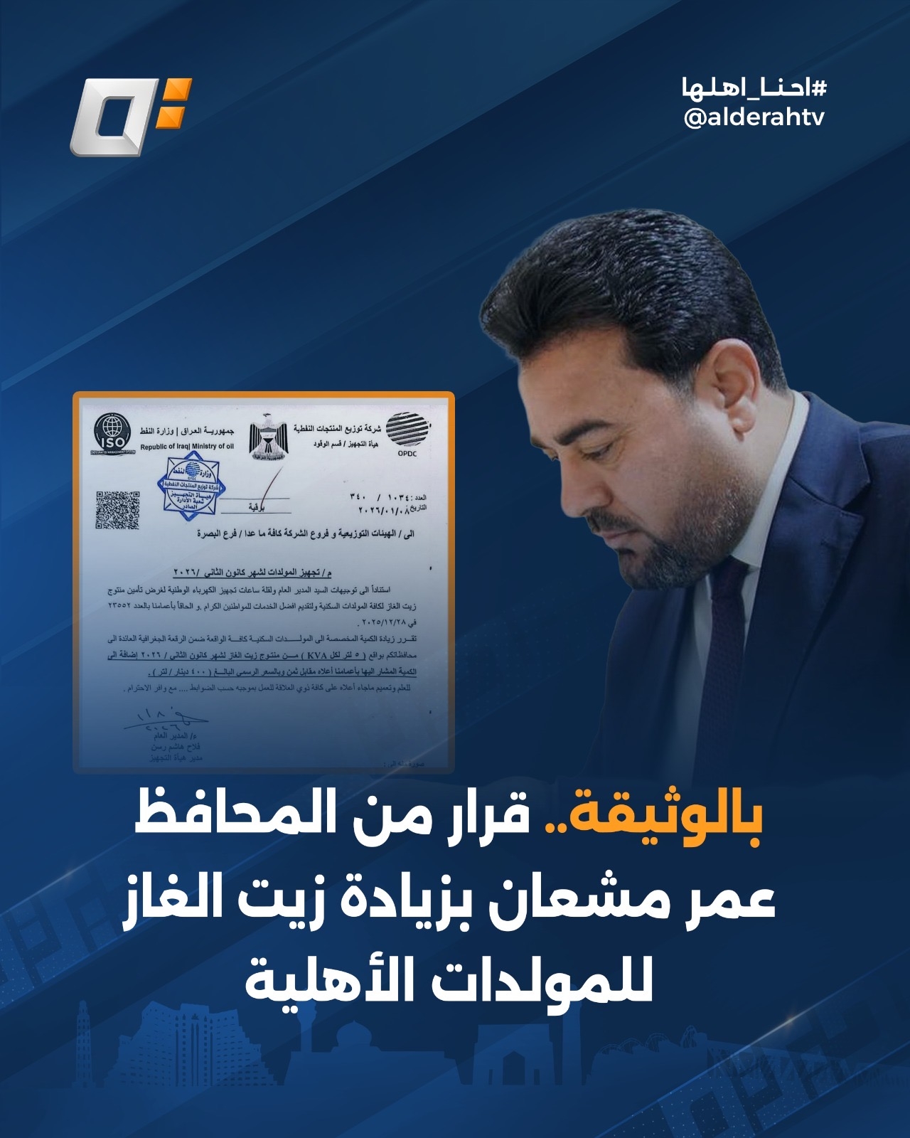 بالوثيقة.. قرار من المحافظ عمر مشعان بزيادة زيت الغاز للمولدات الأهلية