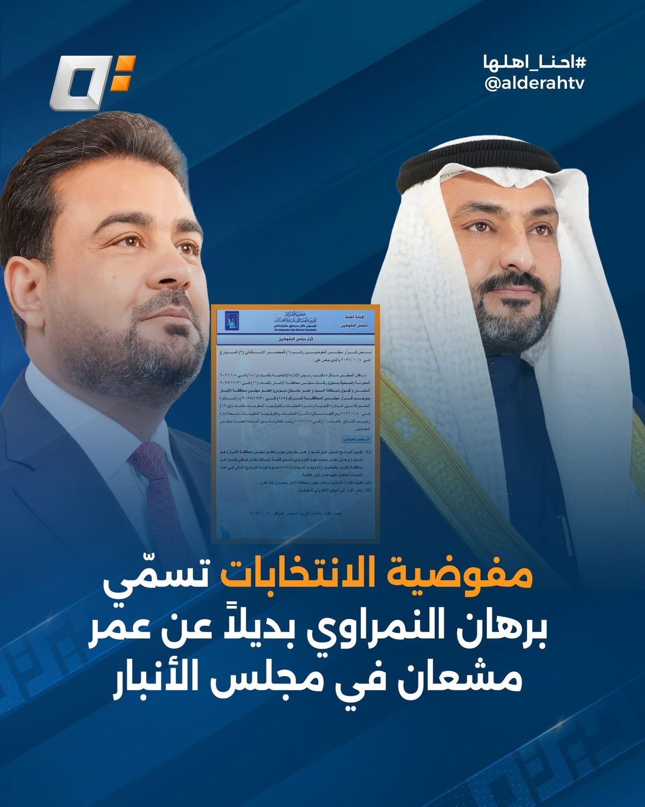 مفوضية الانتخابات تسمّي برهان النمراوي بديلاً عن عمر مشعان في مجلس الأنبار
