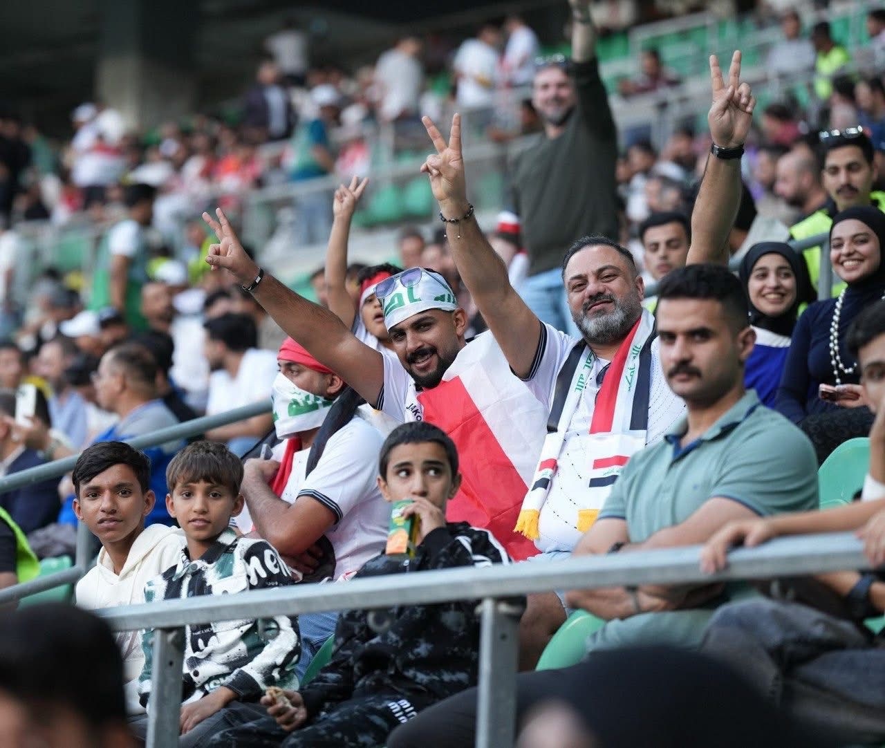 صور | الجماهير العراقية تملأ جذع النخلة لتشجيع أسود الرافدين بموقعة الحسم