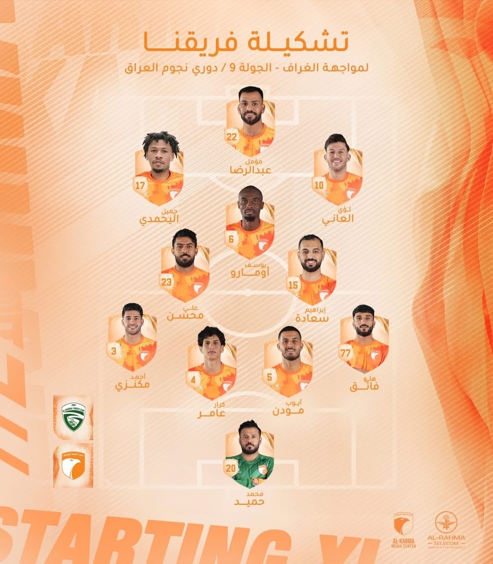 تشكيلة صقور الغربية أمام الغراف في لقاء اليوم بدوري نجوم العراق